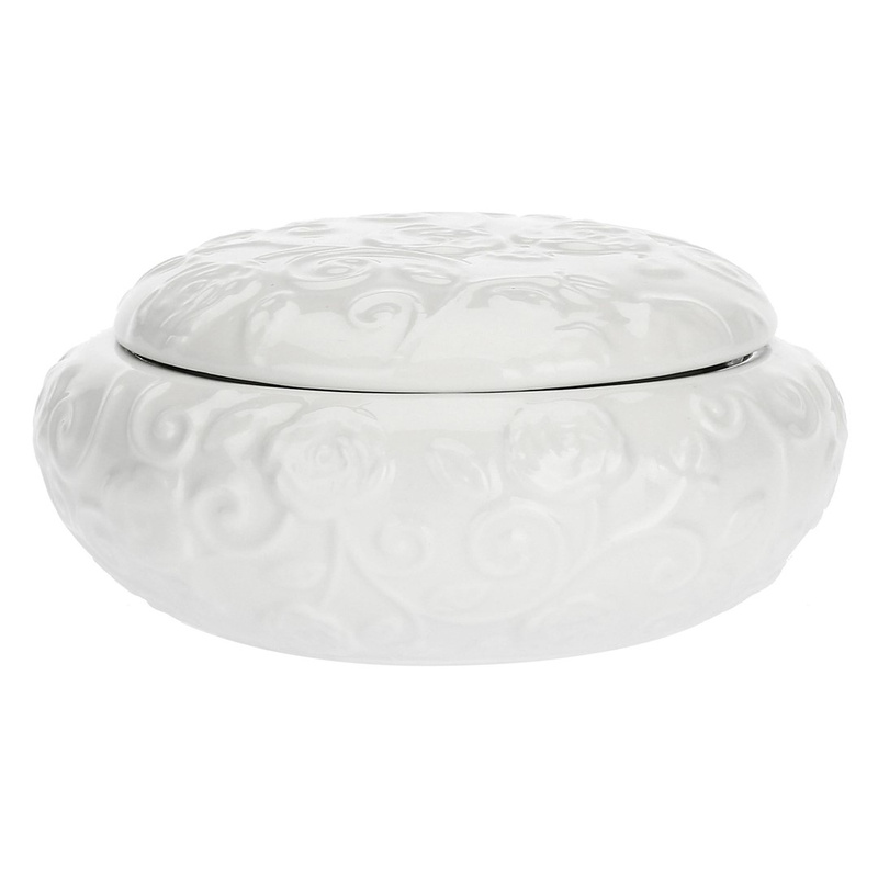 Szczegółowy opis produktuPojemnik z pokrywką zdobiony rzeźbionym, roślinnym wzorem to urocze naczynie utrzymane w nurcie shabby chic, które idealnie sprawdzi się do przechowywania biżuterii, zegarków lub innych, cennych bibelotów bliskich twojemu sercu. Pojemnik dostępny jest w rozmiarach 10 cm i 12.5 cm i pięknie ozdobi każde twoje wnętrze.