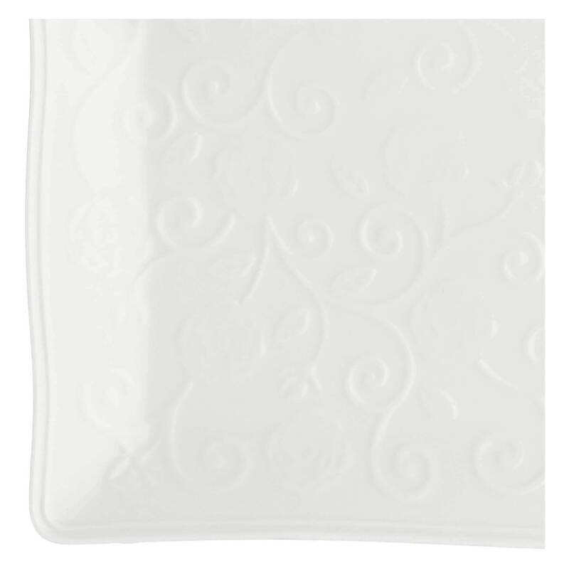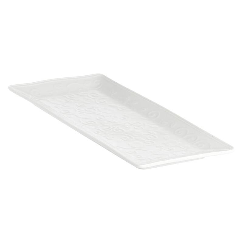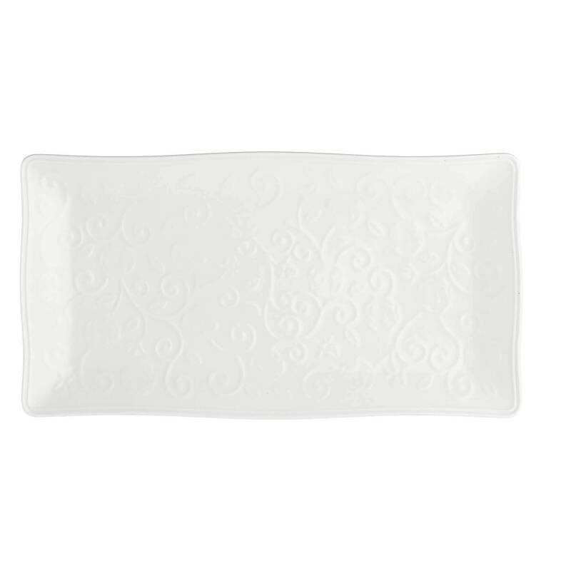 Rzeźbiona taca do serwowania to klejnot w twojej kolekcji naczyń! Uroczy motyw roślinny utrzymany w nurcie shabby chic w połączeniu z wszechstronnym zastosowaniem i klasyczną, białą porcelaną będzie pięknie prezentował się podczas posiłków z rodziną i przyjaciółmi. Taca do serwowania dostępna jest w rozmiarach: 20x12 cm oraz 30x16 cm.