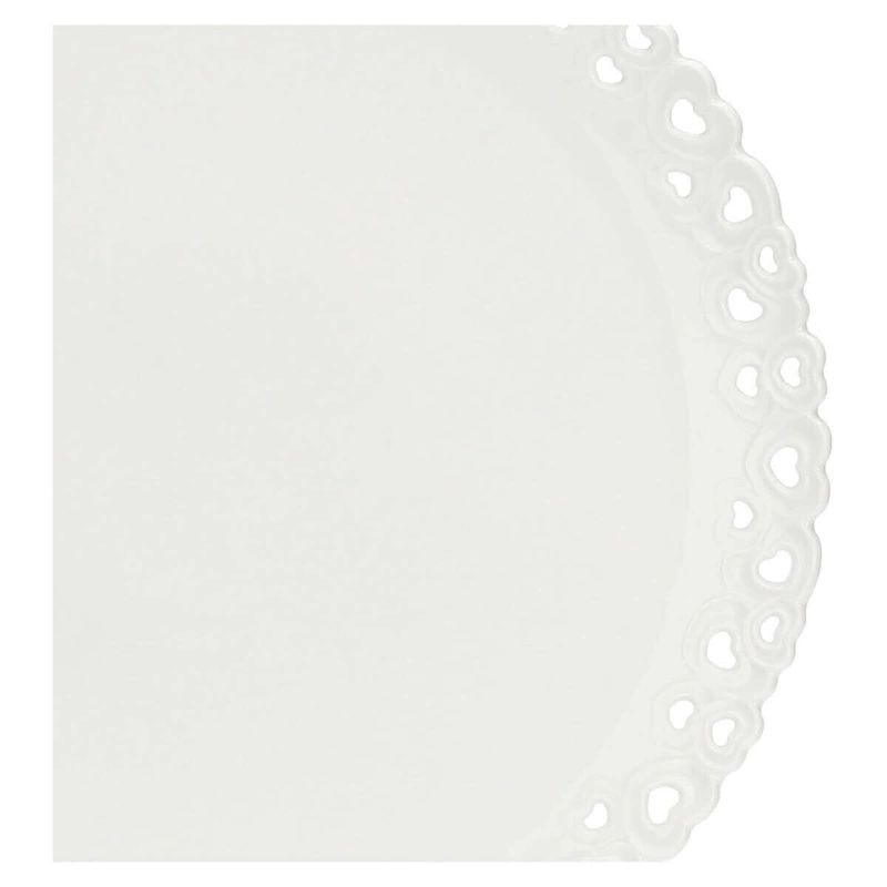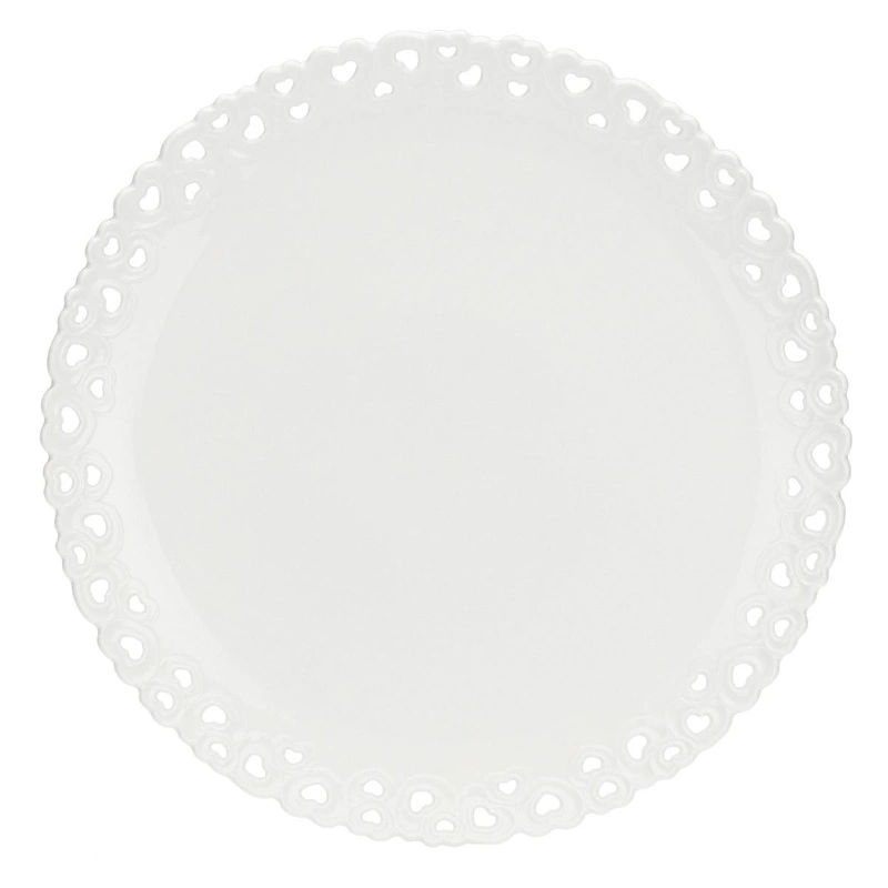 Talerz do ciasta ze zdobionymi brzegami, świetnie nadaje się do serwowania ciast, tortów, tart, babeczek i innych doskonałych wypieków. Klasyczna, biała porcelana pięknie podkreśli urok twojej zastawy stołowej.