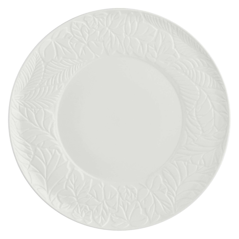 Kolekcja Bosco to białe, porcelanowe naczynia posiadające piękny motyw tłoczonych liści paproci oraz bluszczu, który od razu przypadnie Ci do gustu. Talerze mają szerszy brzeg, na którym pięknie widać roślinny motyw. Kolekcję uzupełniają ramki na zdjęcia, imbryki do herbaty, filiżanki ze spodkami, cukiernice, mleczniki, misy, miseczki i tace o różnych rozmiarach.