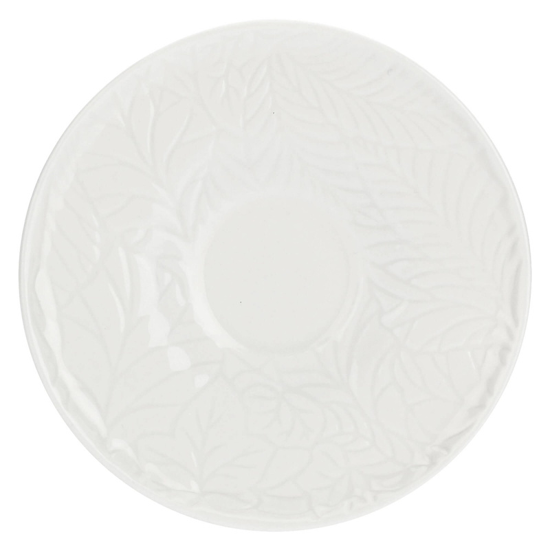 Kolekcja Bosco to białe, porcelanowe naczynia posiadające piękny motyw tłoczonych liści paproci oraz bluszczu, który od razu przypadnie Ci do gustu. Talerze mają szerszy brzeg, na którym pięknie widać roślinny motyw. Kolekcję uzupełniają ramki na zdjęcia, imbryki do herbaty, filiżanki ze spodkami, cukiernice, mleczniki, misy, miseczki i tace o różnych rozmiarach.