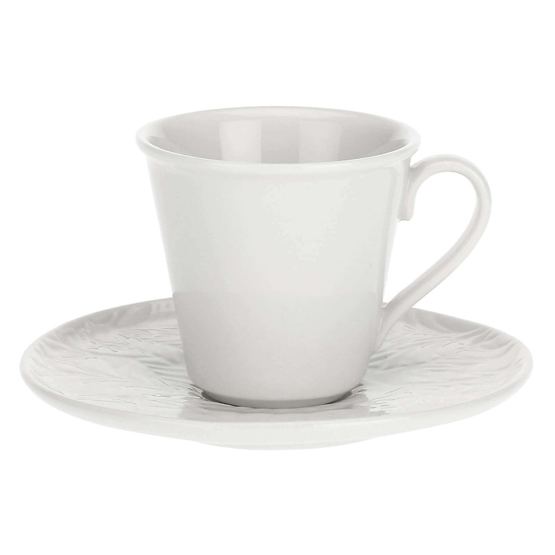 Filiżanka do kawy o pojemności 80 ml z dekoracyjnie grawerowanym spodkiem umili spożywanie ulubionego naparu i w elegancki sposób dopełni twój serwis kawowy.