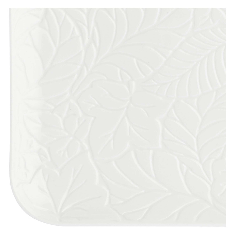 Kolekcja Bosco to białe, porcelanowe naczynia posiadające piękny motyw tłoczonych liści paproci oraz bluszczu, który od razu przypadnie Ci do gustu. Talerze mają szerszy brzeg, na którym pięknie widać roślinny motyw. Kolekcję uzupełniają ramki na zdjęcia, imbryki do herbaty, filiżanki ze spodkami, cukiernice, mleczniki, misy, miseczki i tace o różnych rozmiarach.