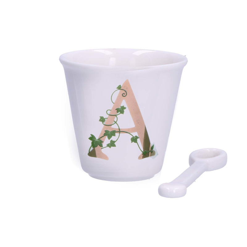 Kompletujesz swoją zastawę stołową i szukasz do niej niebagatelnych dodatków? Pojedyncze filiżanki zdobione bladoróżowymi literami alfabetu i roślinnym motywem ożywią każdy, nawet najprostszy serwis kawowy! W zestawie z dopasowaną, porcelanową łyżeczką sprawią, że Twoja kolekcja kuchenna zyska wyrafinowany akcent, który docenią wszyscy Twoi goście.