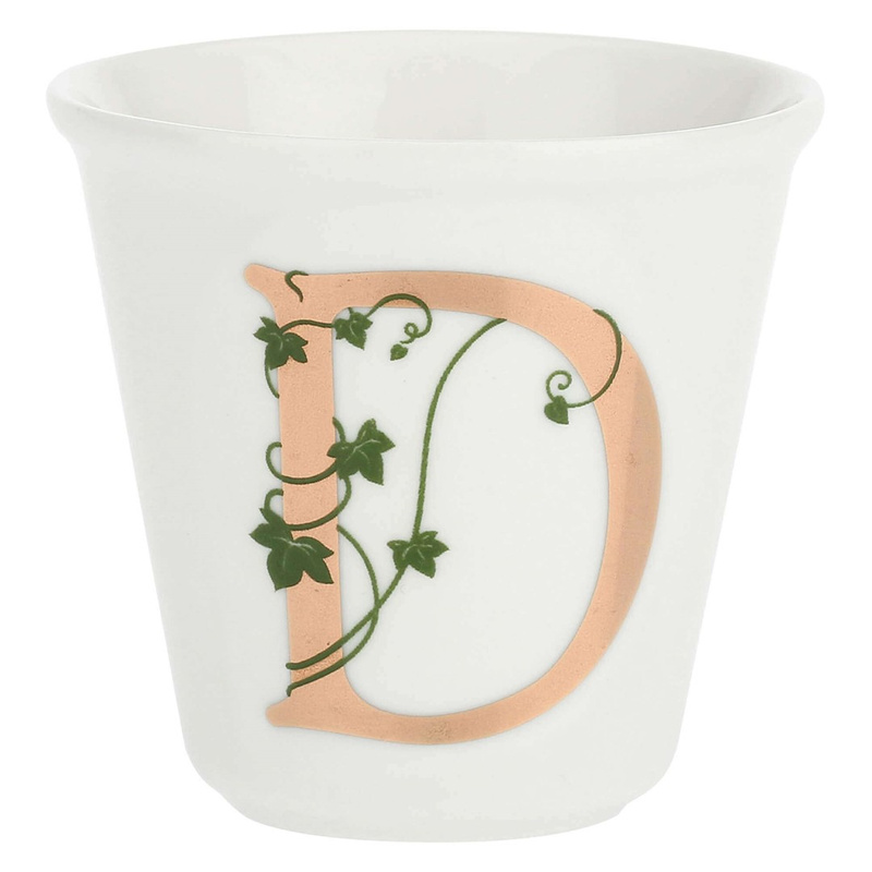 Filiżanka o pojemności 75 ml z łyżeczką to wyjątkowa porcelana zdobiona literami alfabetu i roślinnym motywem, która urozmaici twój serwis do kawy. Filiżanka idealnie nadaje się do delektowania gorącym espresso, a oryginalny design pozwoli Ci na stworzenie własnej, indywidualnej kolekcji filiżanek z bliskimi twemu sercu literami.