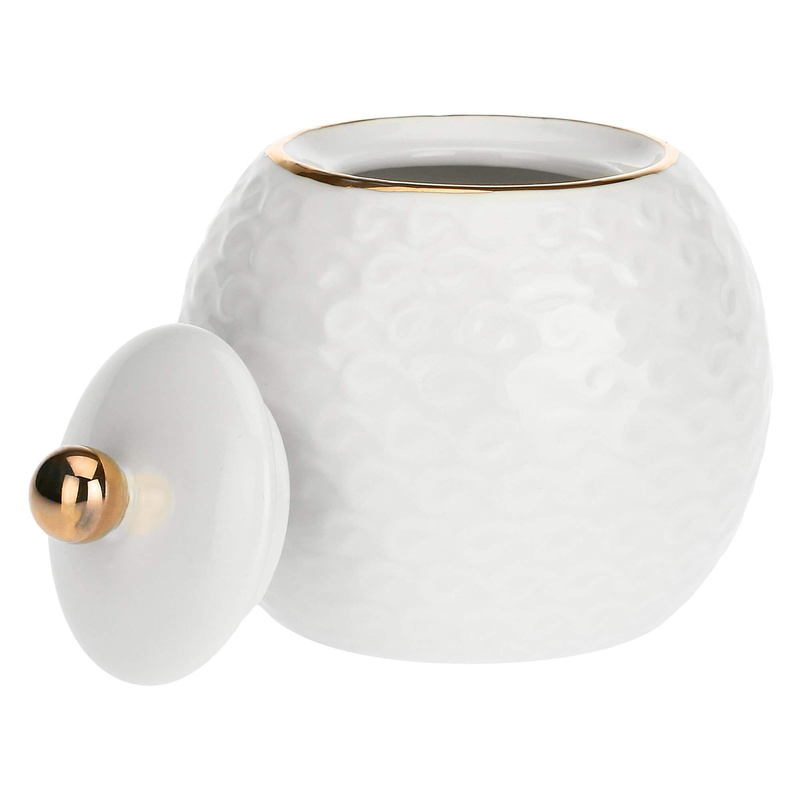 Szczegółowy opis produktuCukiernica z pokrywką została wykonana z najwyższej jakości białej porcelany wyróżniającej się delikatnym złotym zdobieniem. Elegancka cukiernica podana razem z pozostałymi naczyniami z kolekcji Momenti Oro będzie piękną ozdobą twojej kuchni i jadalni.