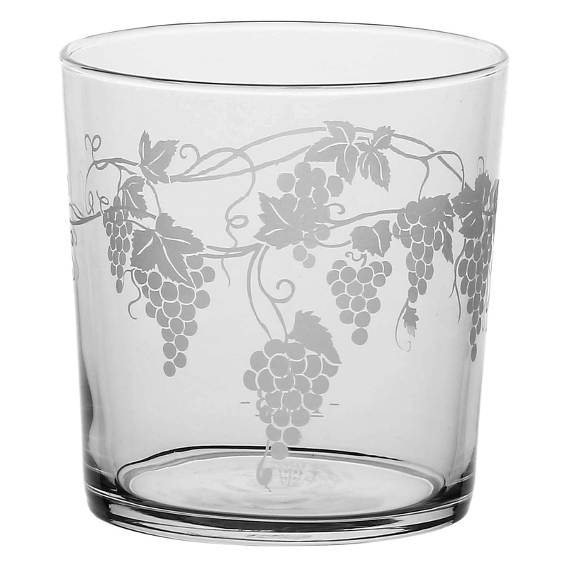Szczegółowy opis produktuElegancka szklanka o pojemności 350 ml z wygrawerowanymi winogronami pięknie ozdobi twoją kuchnię i jadalnię i uprzyjemni spożywanie ulubionych napojów.