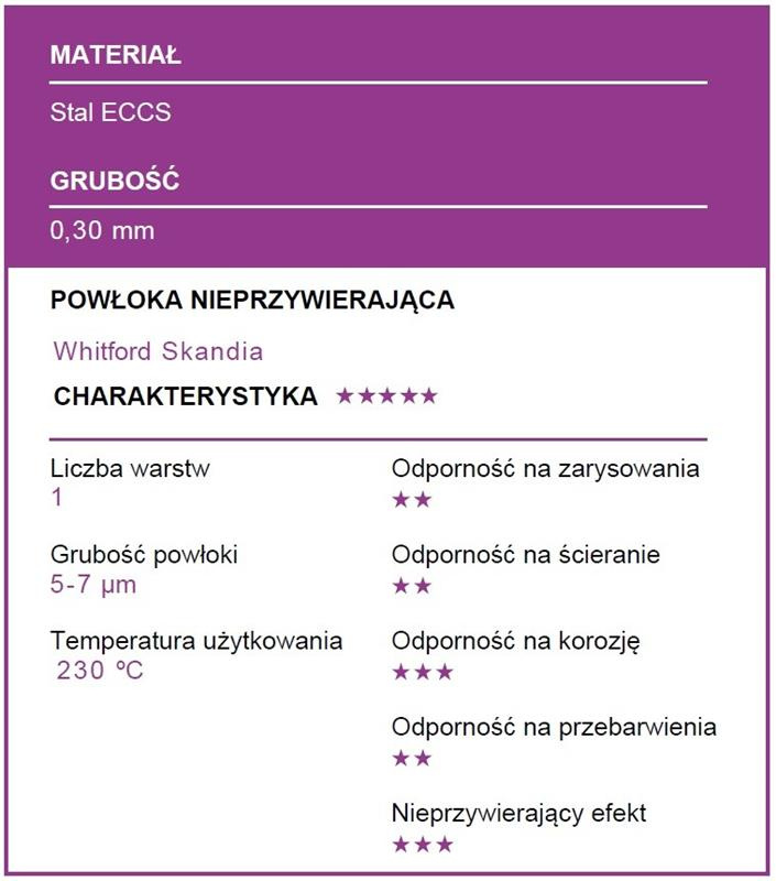 Formy wykonane ze stali ECCS o grubości 0,3mm z powłoką nieprzywierającą Whitford Skandia.