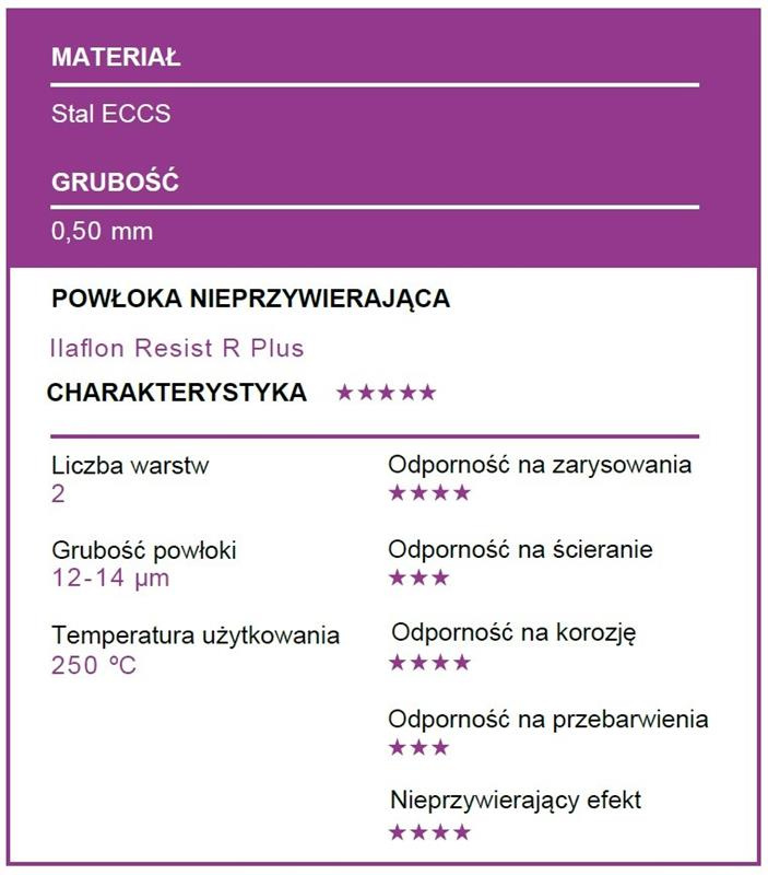 Formy wykonane ze stali ECCS o grubości 0,50mm z powłoką nieprzywierającą Ilaflon Resist R Plus.