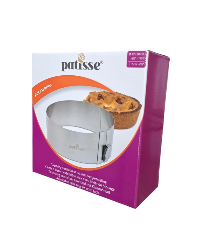 Patisse - Regulowana obręcz niska do ciasta ze stali nierdzewnej z blokadą 17-30cm Regulowana obręcz niska do ciasta ze stali nierdzewnej z blokadą