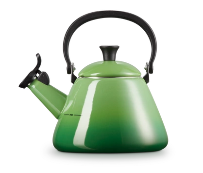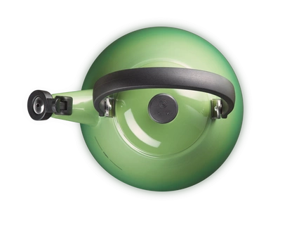 Czajniki Le Creuset Kone wyposażone są w ruchomą, składaną, nienagrzewającą się rączkę i podnoszony mocowany na stałe do dziubka gwizdek.