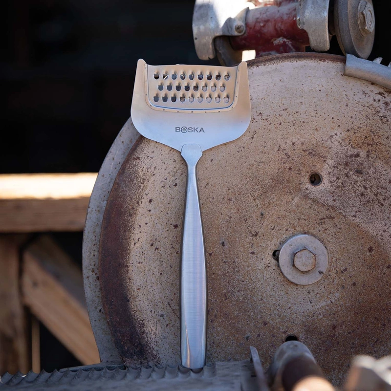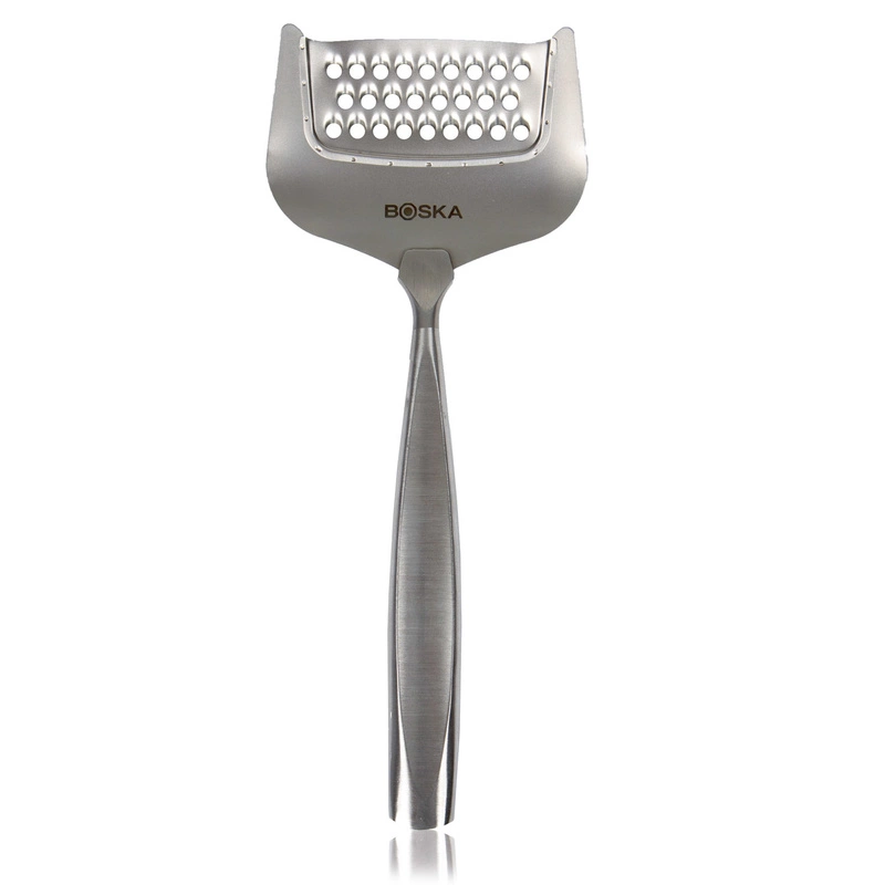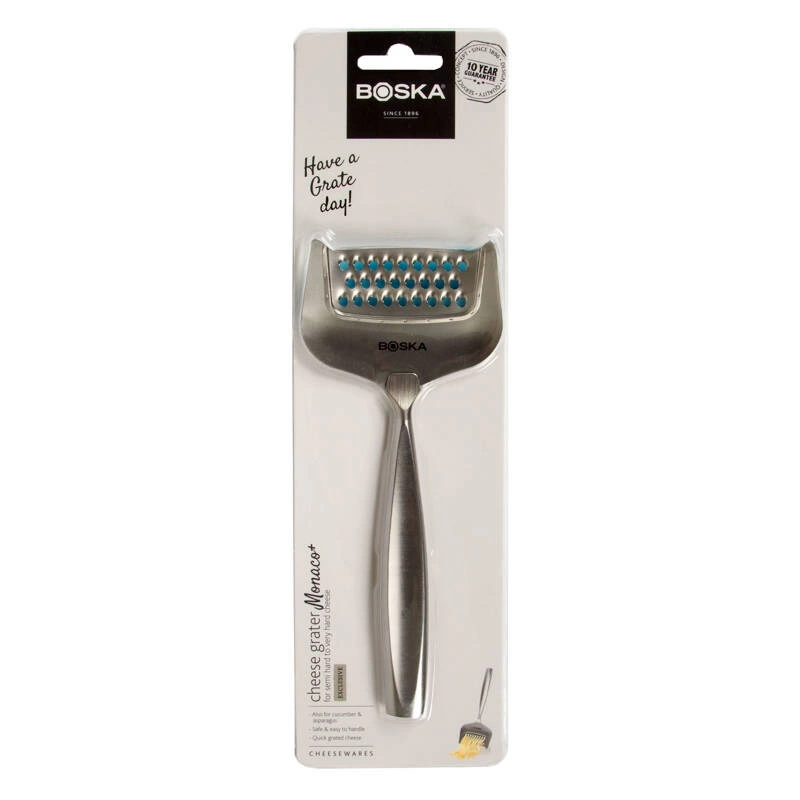Trzyj najsmaczniejsze półtwarde i twarde sery dzięki tarce z kolekcji Monaco+! Kolekcja Monaco+, będącej wynikiem 120 lat doświadczeń w produkcji narzędzi do sera, składa się z narzędzi z najwyższej półki, dlatego właśnie ta tarka jest w całości wykonana ze stali nierdzewnej.
