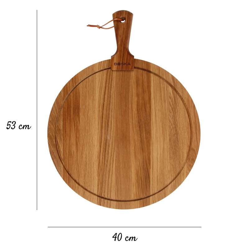 Spróbuj także dodać innych smakołyków, a Twój stół będzie wyglądał jeszcze ciekawiej! Okrągłe deski dębowe występują także w rozmiarach S, M i XL.