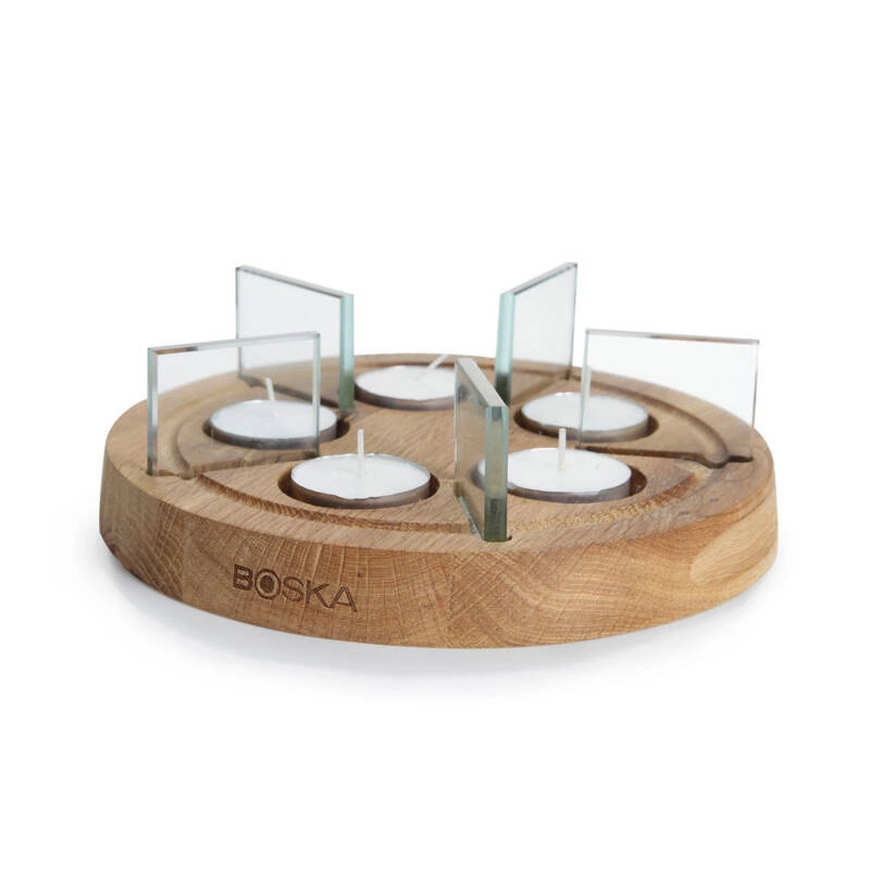 Przybliżone wymiary podstawy: średnica 20 cm, wysokość całkowita 6 cm, wysokość drewnianej podstawy 2,2 cm