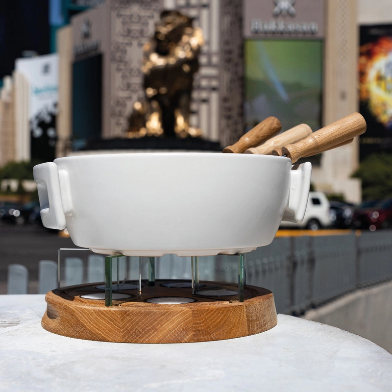 Naczynia ceramicznego można użyć w kuchni mikrofalowej i piekarniku, co znacznie skraca czas przygotowania fondue.