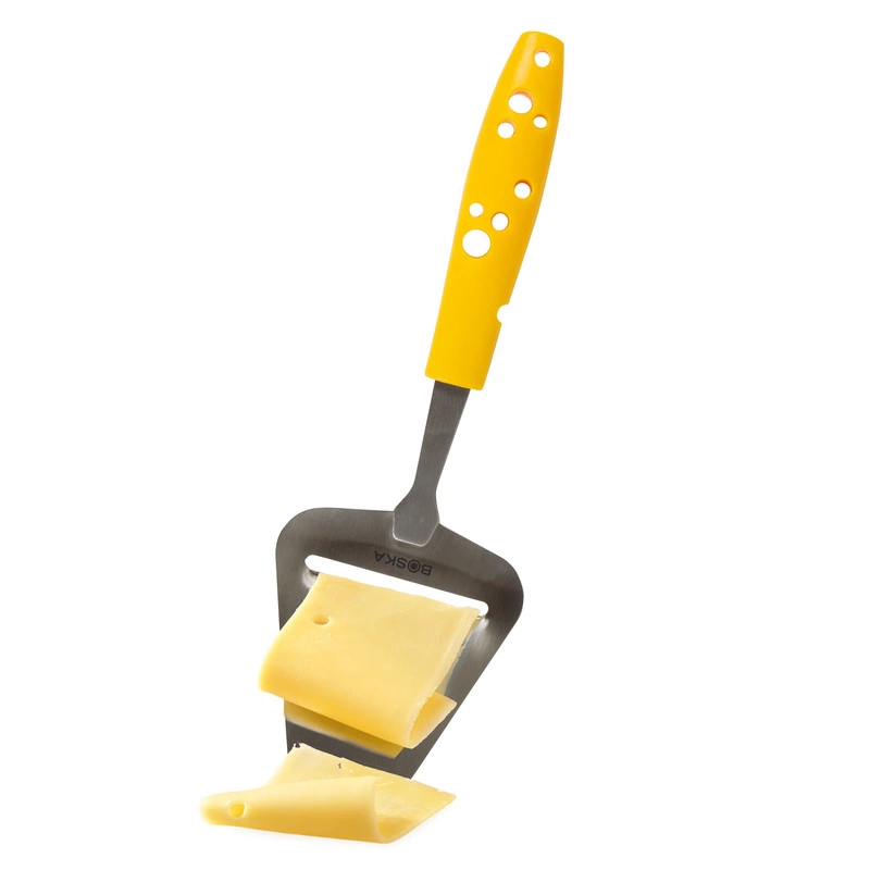 Odcinaj najsmaczniejsze plasterki sera slicerem z uchwytem przypominającym ser szwajcarski! Sprawdzi się przy ser półtwardych i twardych, a także przy ogórkach czy marchewkach. Ten slicer jest idealnym prezentem dla każdego miłośnika sera! Jego ostrze zostało wykonane ze stali nierdzewnej a uchwyt z plastiku.
