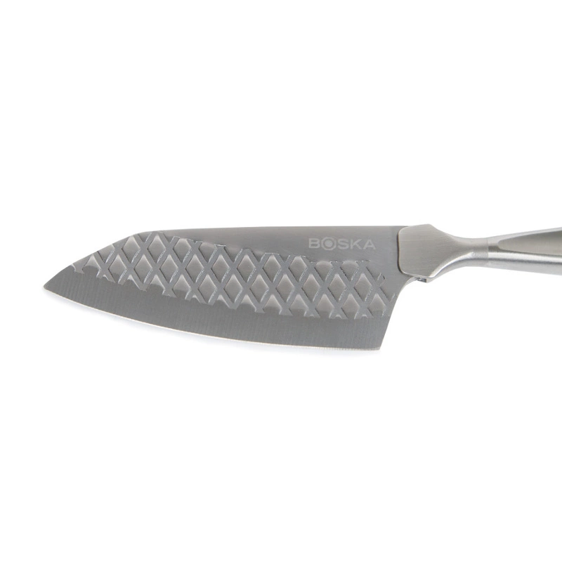 Klinga jest krótka, ostro zakończona w sam raz do wbicia w ser, ze specjalną fakturą na powierzchni, która ogranicza kontakt z serem, co z kolei zapobiega klejeniu się sera do ostrza.