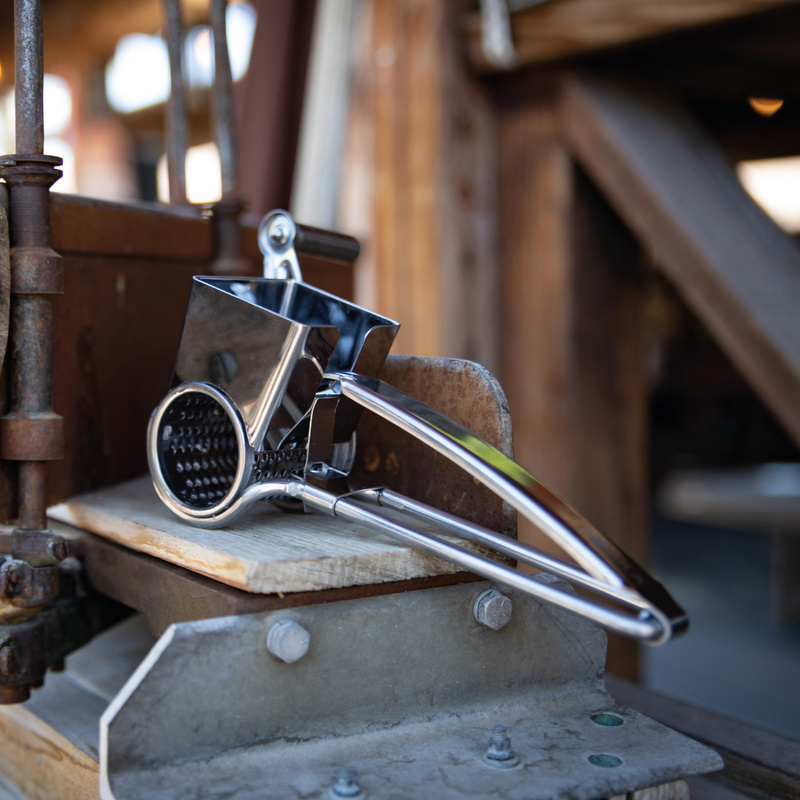 Tarka obrotowa Romano - stalowa! Bezpieczna i poręczna stalowa tarka obrotowa do sera twardego i półtwardego.