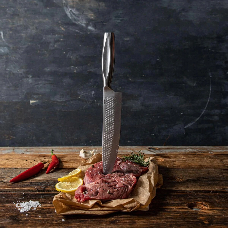 Nóż szefa kuchni – do krojenia wszystkiego! Ostrze wykonane zostało z dobrej jakości stali nierdzewnej o optymalnej twardości.