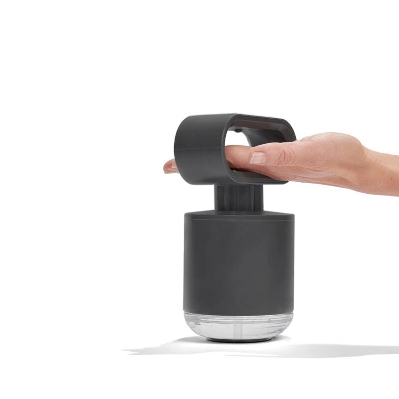 Dozownik do mydła grafitowy LOOP został zaprojektowany do obsługi jedną ręką.