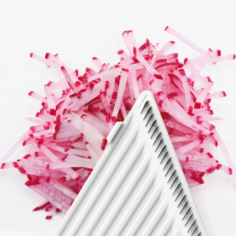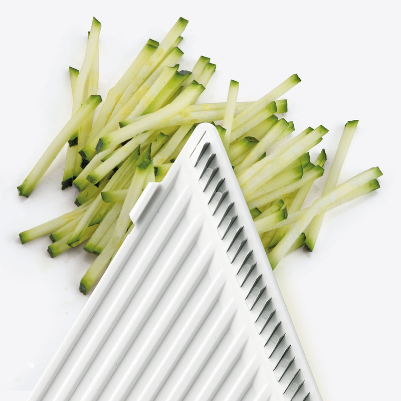Dzięki poręcznemu kształtowi i kompaktowej formie szatkownica wygodnie spoczywa w dłoni i z łatwością mieści się w kuchennej szufladzie, nie zajmując wiele miejsca.