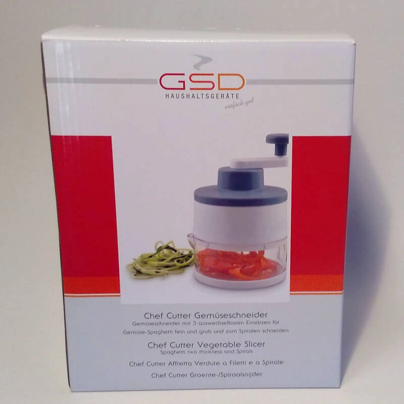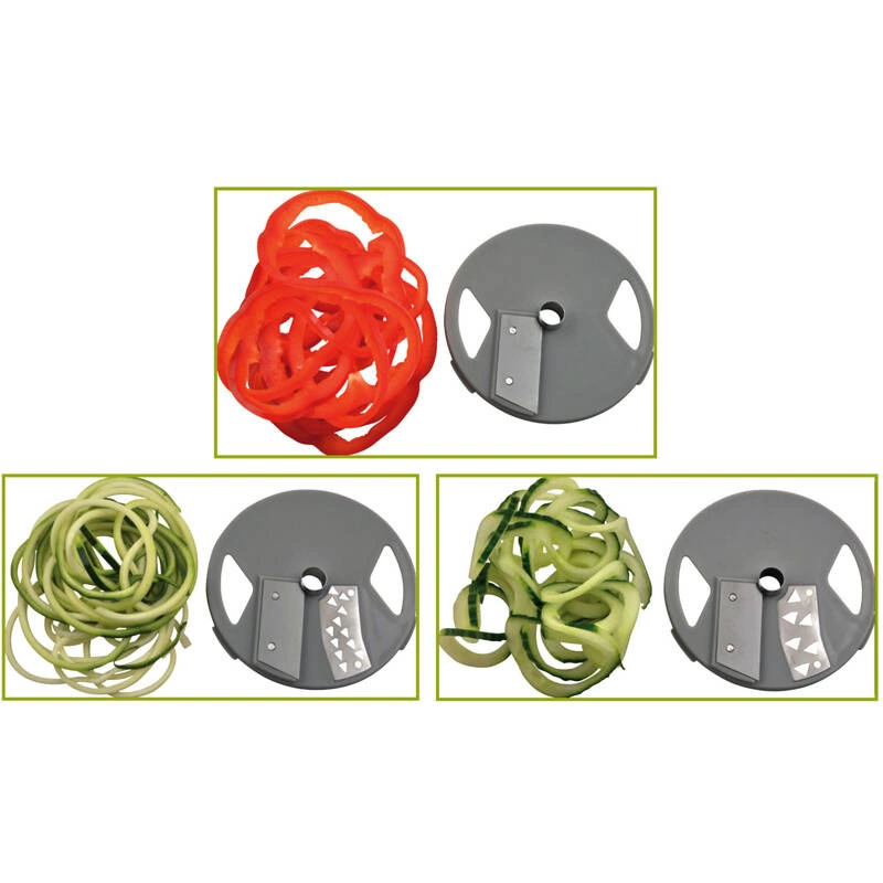 Krajalnica do warzyw z trzema tarczami do przygotowania warzywnego spaghetti.