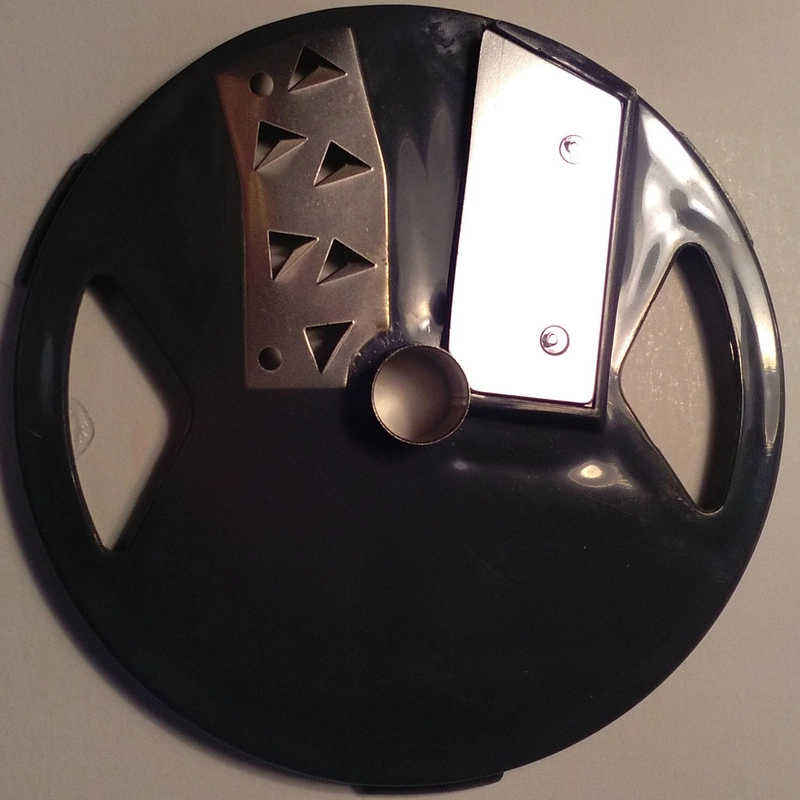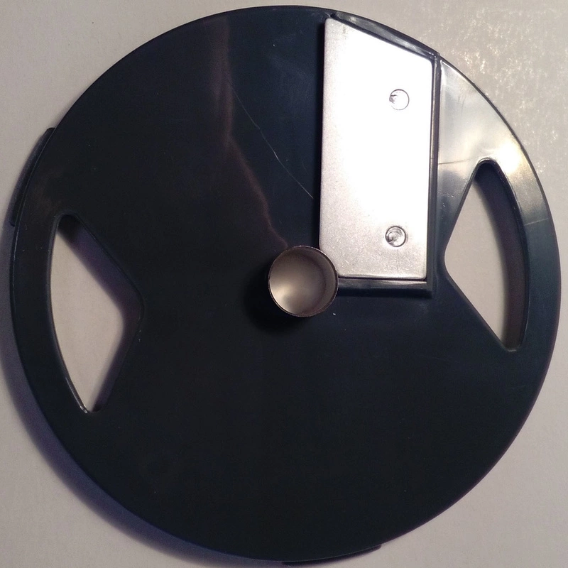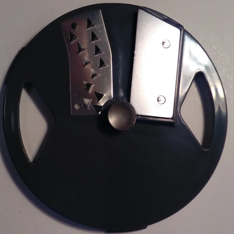 Każda z tarcz ma po przeciwnych stronach wycięcia na palce ułatwiające ich montowanie w krajalnicy.
