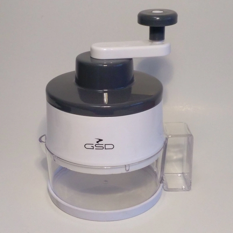 Wystarczy zdjąć pokrywę razem z korbką, położyć warzywo na tarczy i docisnąć je zakładając pokrywę.