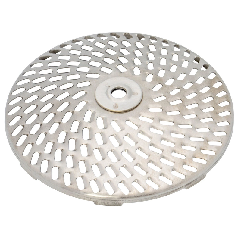 W zestawie jest zawarta tarcza z otworami o średnicy 2mm, tarcza z otworami o średnicy 3mm oraz tarcza szczelinowa, szczególnie dobrze sprawdzająca się w przypadku warzyw włóknistych.