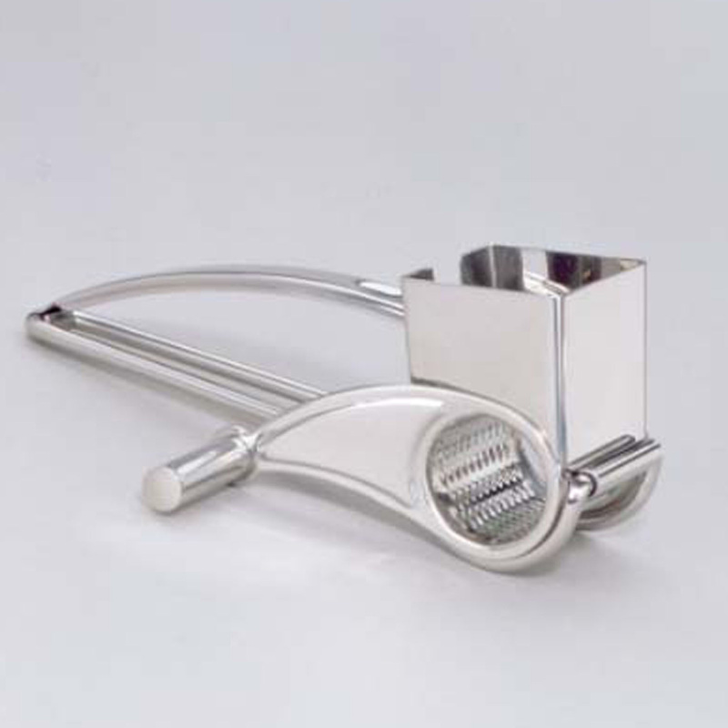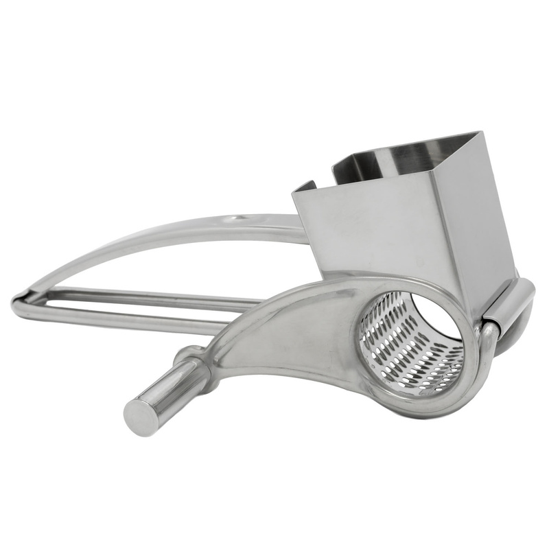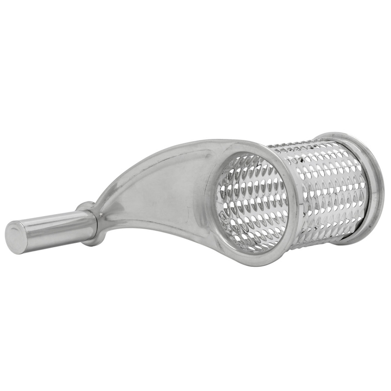 Tarka ręczna ze stali nierdzewnej z bębnem o drobnych ostrzach do orzechów, migdałów, czekolady i sera.