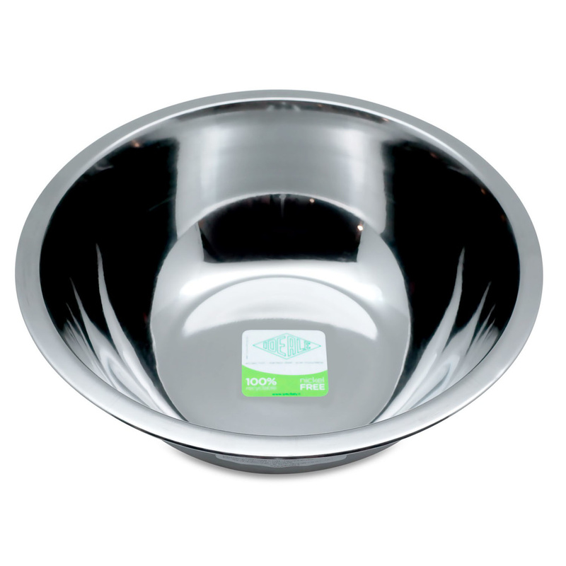 Praktyczna i elegancka miska ze stali nierdzewnej z antypoślizgową podstawą ze stali nierdzewnej, która pozwala utrzymać miskę w miejscu podczas zagniatania ciasta czy mieszania różnych składników.