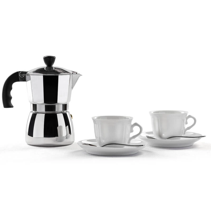 Pyszne i aromatyczne espresso jest gotowe! Górny zbiornik kawiarki jest wykonany z aluminium, dolny: zewnętrzna ścianka - stal oraz wewnętrzna ścianka - aluminium.