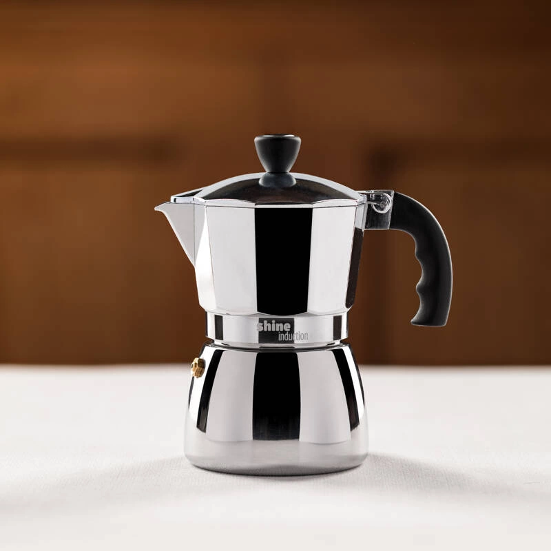 Kawiarka SHINE może być używana na płytach gazowych, elektrycznych, ceramicznych i indukcyjnych.