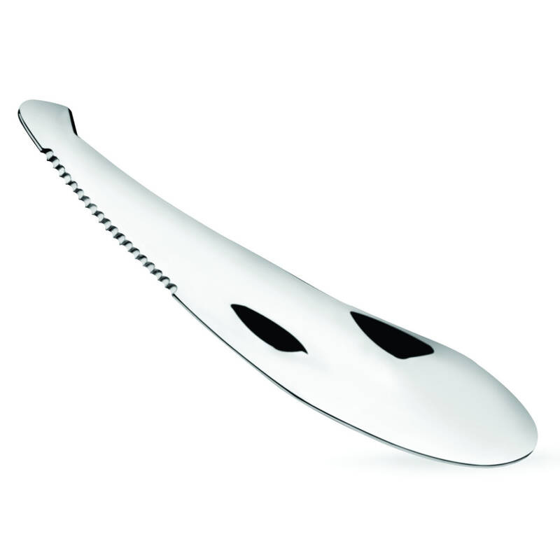 Wielofunkcyjne akcesorium ze stali nierdzewnej, łączące w sobie nóż oraz łyżkę do konsumowania kiwi bez brudzenia rąk oraz do łatwego obierania cytrusów.