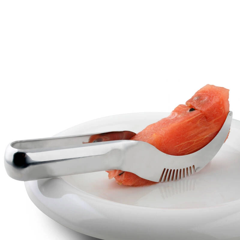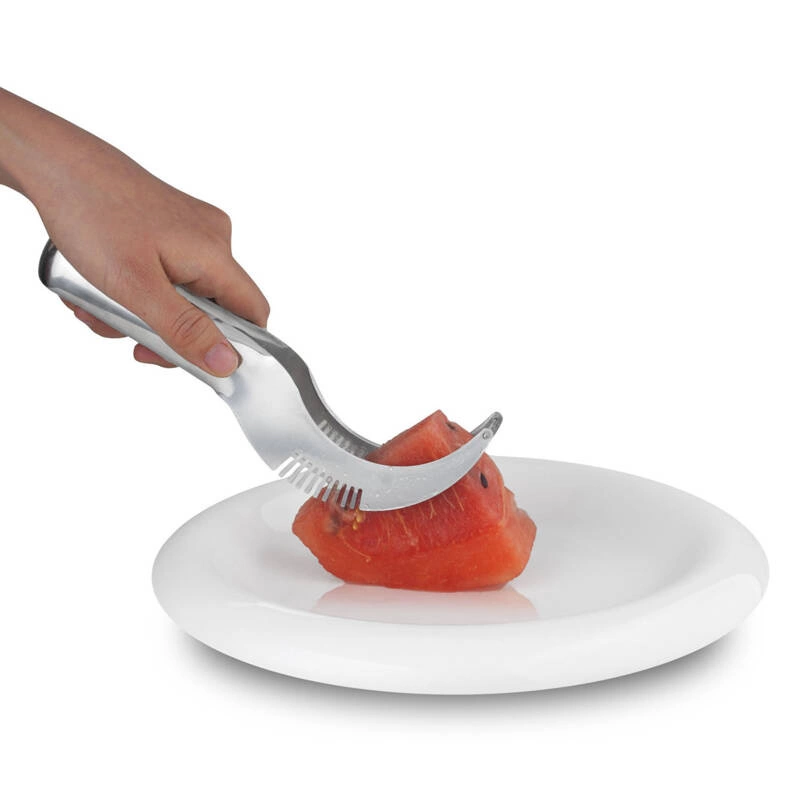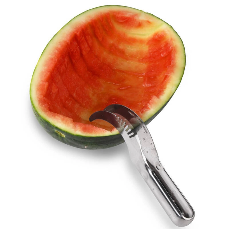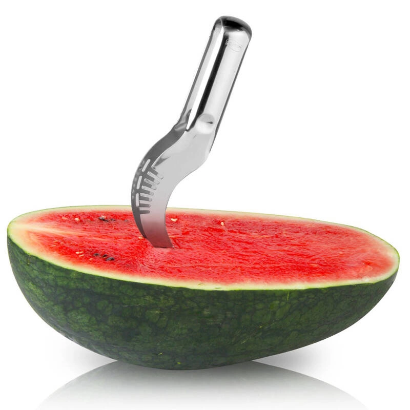 Angurello jest innowacyjnym nożem ze stali nierdzewnej przeznaczonym do cięcia i nakładania kawałków arbuza w szybki i czysty sposób.