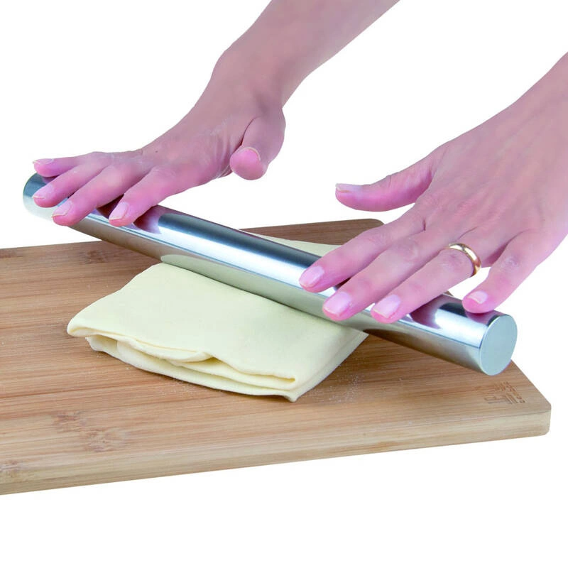 Profesjonalny wałek ze stali nierdzewnej do rozwałkowywania słodkiego lub słonego ciasta.