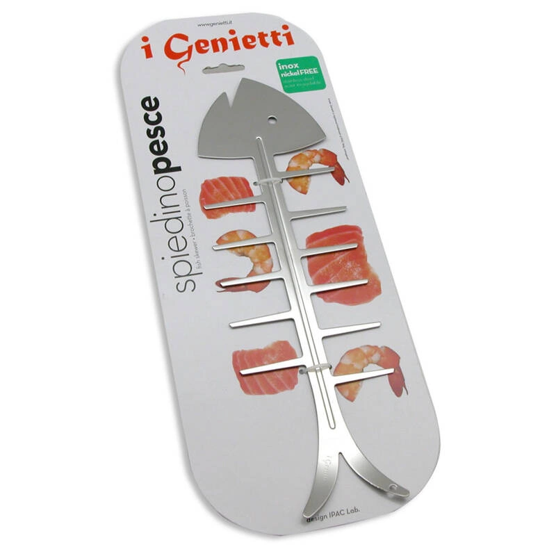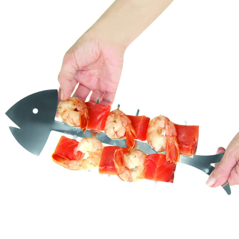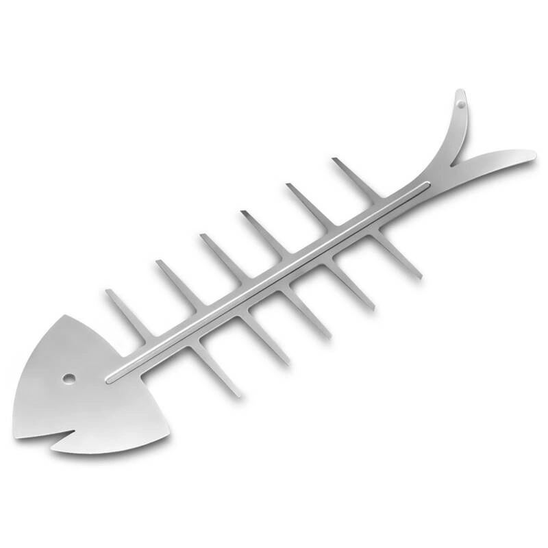 Nadziewacz ze stali nierdzewnej w kształcie ryby do serwowania grillowanej ryby w oryginalny sposób.