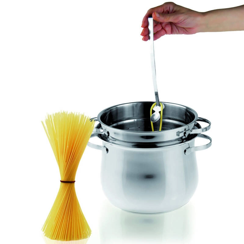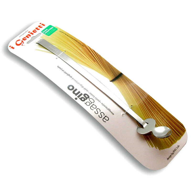 Assaggino to łyżkowidelec o długim uchwycie, umożliwiający testowanie każdego rodzaju makaronu podczas gotowania: linguine, spaghetti, penne, rigatoni… Można myć w zmywarce.
