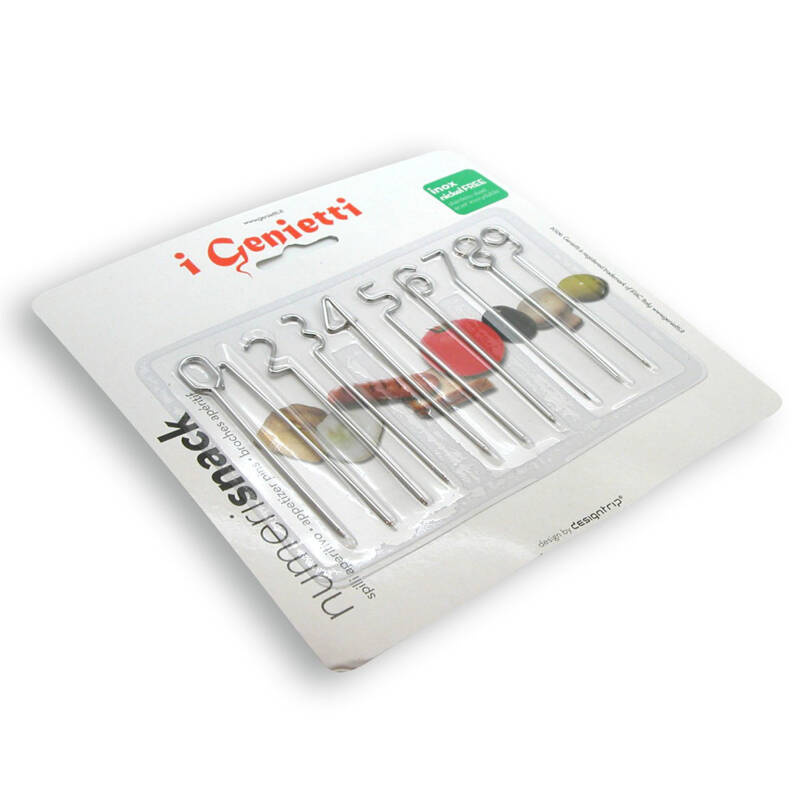 Stalowe wykałaczki do przekąsek z numerami od 0 do 9, mimo swojej prostoty wyróżniają się swoją formą.
