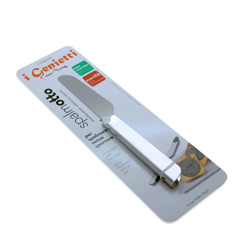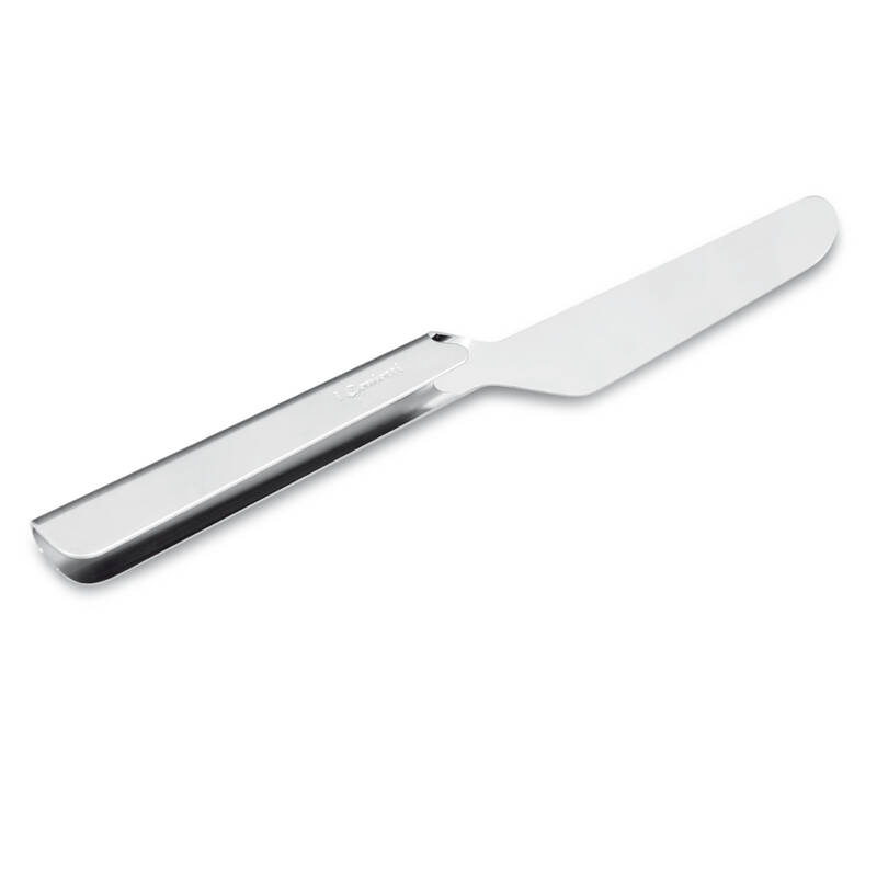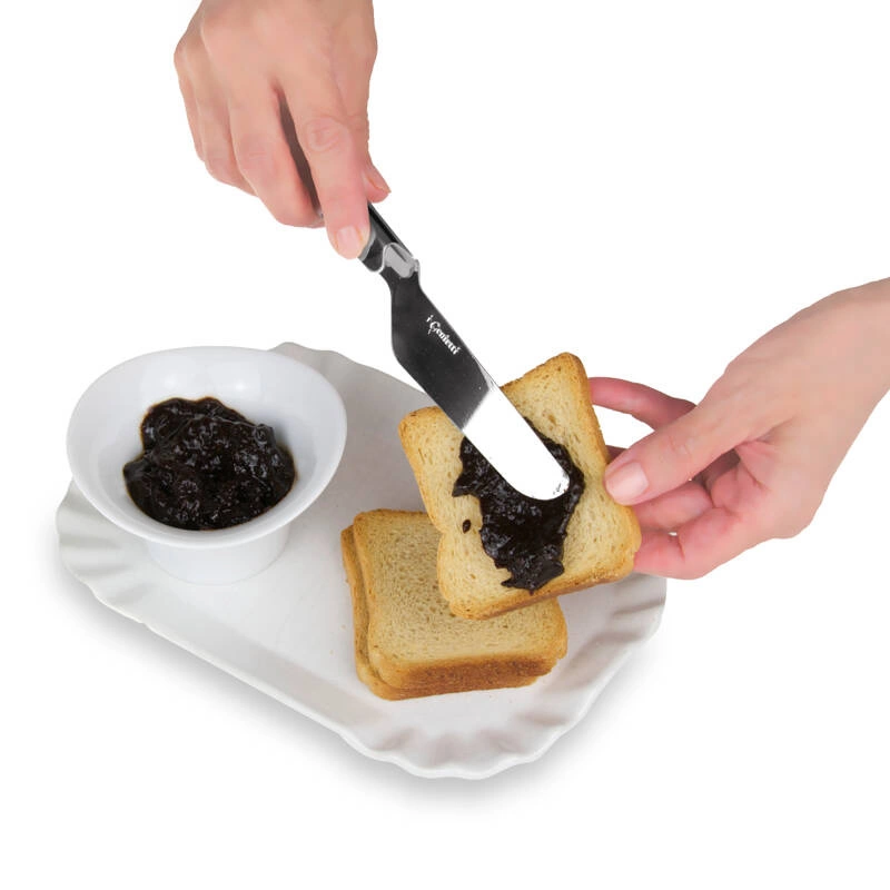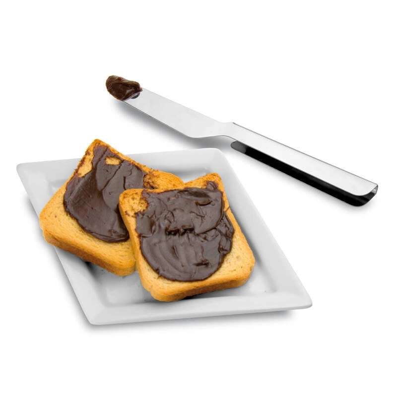 Specjalnie ukształtowana rękojeść trzyma z dala od blatu ostrze do smarowania. Nożykiem rozsmarujesz masło, dżem, czekoladę i kremy a odłożony właściwą stroną sprawi, że Twój blat pozostanie czysty.