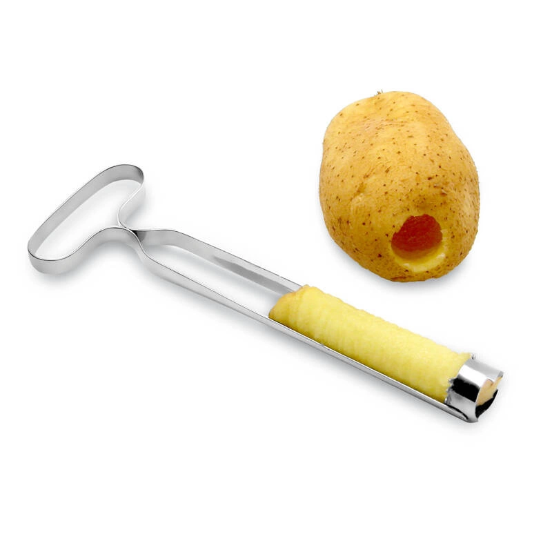 Instrukcja: W celu wydrążenia owocu lub warzywa należy drylownicę wkręcić w miąższ zgodnie z ruchem wskazówek zegara a następnie przekręcić w drugą stronę i przytrzymując owoc usunąć drylownicę wykręcając.