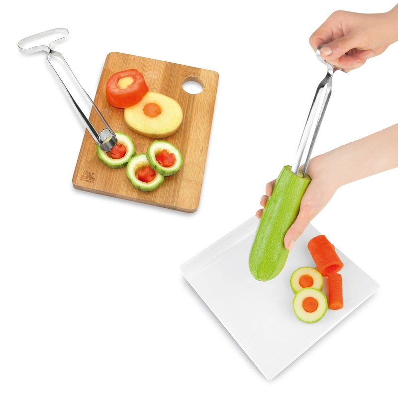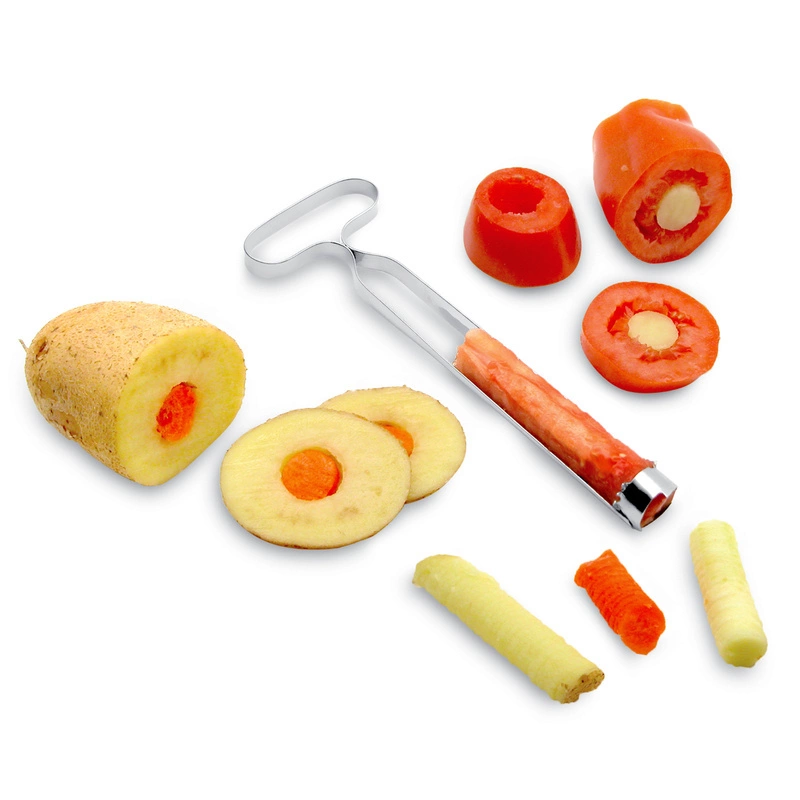 Drążarka do warzyw i owoców to proste urządzenie, które pomoże bez kłopotu pozbyć się gniazda nasiennego ze środka owocu, pozostawiając go w całości.