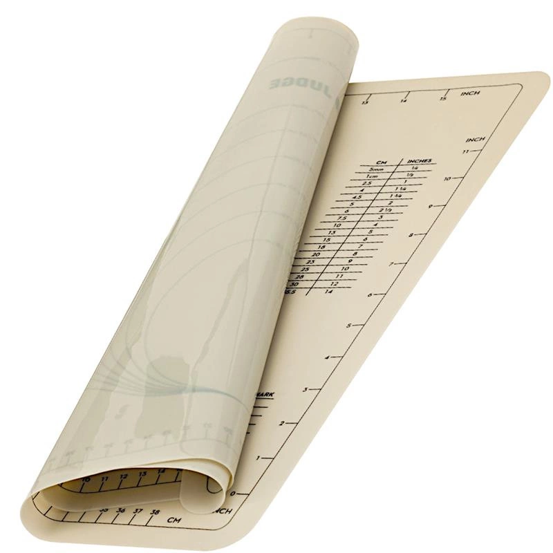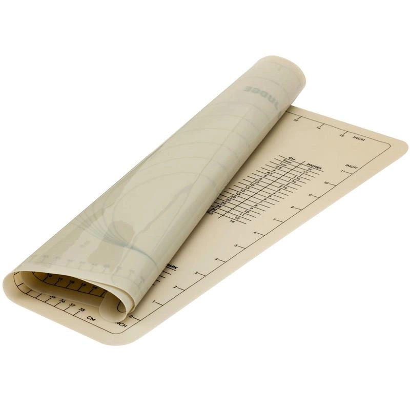 Silikonowa stolnica - mata do pieczenia o wymiarach 500 mm X 395 mm, nie przylega do ciasta, jest elastyczna, bez problemu zrolujesz w niej ciasto. Może również służyć jako mata do pieczenia. Stolnica ma rozrysowane miarki: na środku okręgi o różnej średnicy, na bokach w centymetrach i calach, są również przydatne tabele konwersji. Na brzegach stolnicy rozrysowano podziałkę do 28 cm i 15 cali, po środku znajdują się okręgi o średnicy 12 cm, 15 cm, 17 cm, 20 cm, 25 cm i 30 cm po bokach umieszczono tabele do przeliczania: gramy/uncje , ml/oz, cm/cale oraz °C/°F Można myć w zmywarce. Do użycia w piekarniku do 220°C