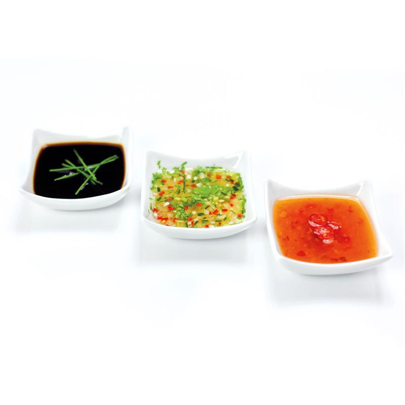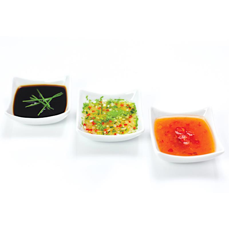 Zestaw 3 porcelanowych miseczek do sosów i dipów.