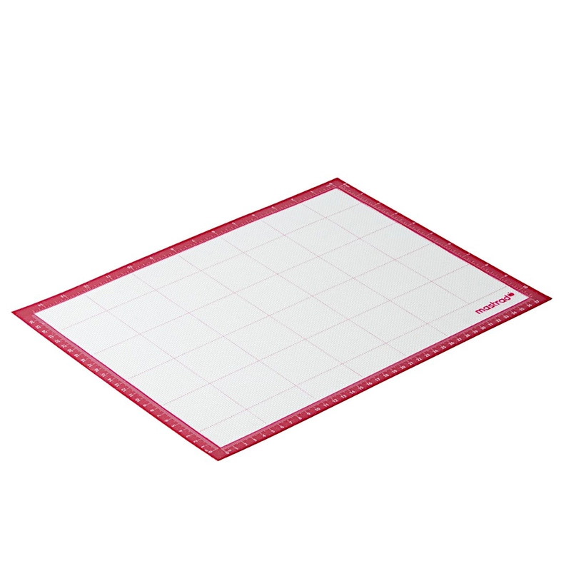 Mata z włókna szklanego pokrytego silikonem pomaga w szybkim przygotowaniu wypieków oraz dań zarówno na ciepło jak i na zimno! Mata jest uniwersalna: - pozwala na pracę z masą cukrową i nugatem, ponieważ nic do niej nie przywiera - stanowi doskonałą podstawę roboczą do zagniatania, rozwałkowywania, formowania - możemy na niej piec: ciastka, rogaliki, chleb, pizzę, kurczaka itp. Mata do pieczenia z powlekanego silikonem włókna szklanego doskonale rozprowadza ciepło, dzięki czemu pieczenie jest szybsze, a nawet bardziej smaczne! Odporna na ekstremalne temperatury (-40 ° F / -40 do 230 ° C), do użycia w piekarniku, mikrofali lub lodówce, a nawet można ją zwinąć z ciastem, czekoladą i przechowywać w zamrażarce. Zalety: krawędzie wyskalowane w cm i calach oraz wzór siatki sprawiają, że pomiar i cięcie ciasta jest dziecinnie proste.