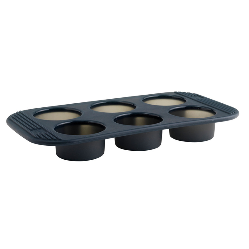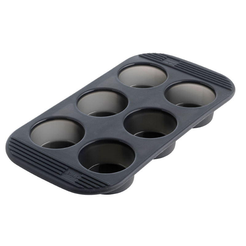 Forma ma wygodne rączki wzmocnione zatopionym w silikonie metalem, aby łatwo było wkładać i wyjmować ją z piekarnika lub zamrażarki.