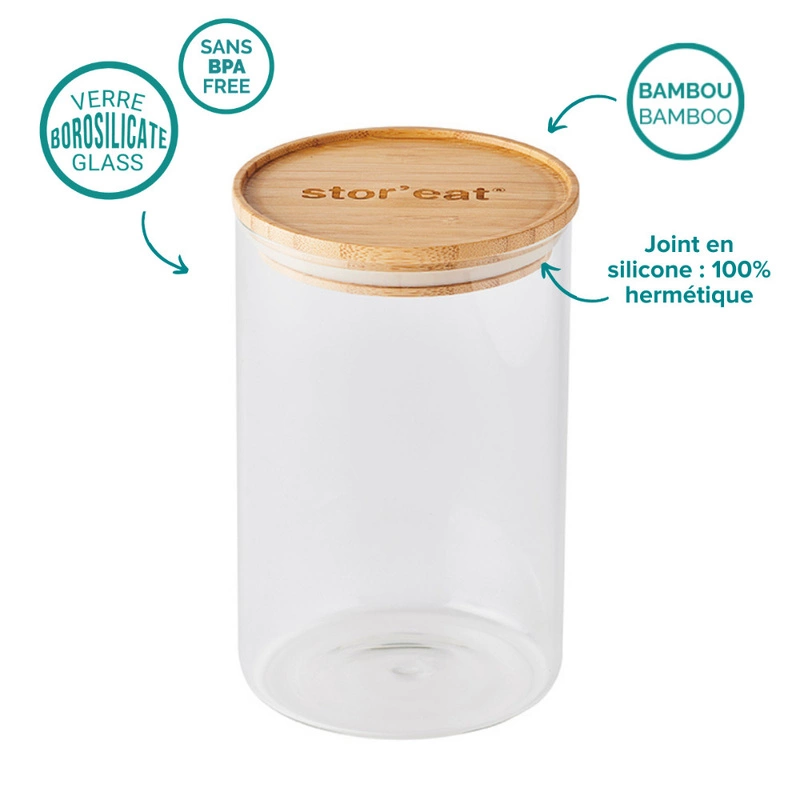 Materiał: szkło borokrzemowe, pokrywka bambus, uszczelka silikon.