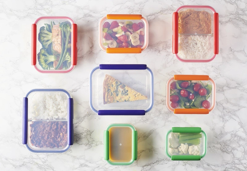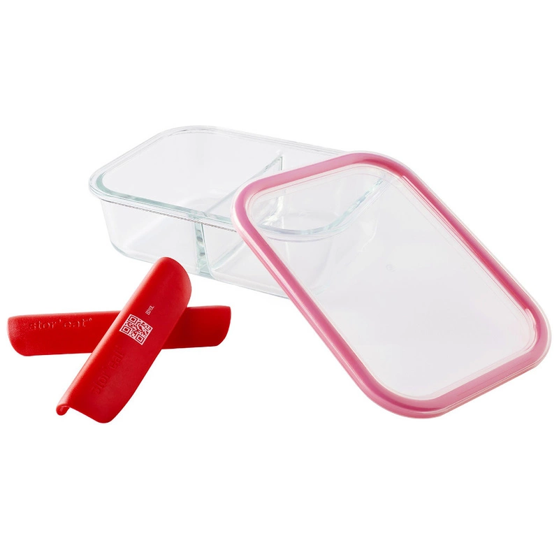 Materiał: pojemnik szkło borokrzemowe zakres temperatur od -20 C do 400 C, pokrywa tworzywo BPA Free, uszczelka silikon, klamry zamykające plastik.