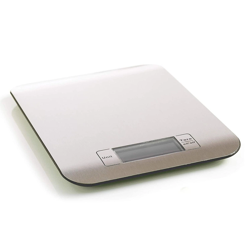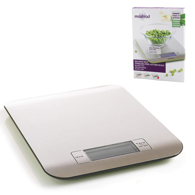 Zważ wszystkie składniki z dokładnością co do 1 grama, nawet do 5 kg! Wyjątkowo płaska i lekka waga wykonana z wytrzymałej stali nierdzewnej waży w gramach, kilogramach, funtach i uncjach, z funkcją TARE i podświetlanym wyświetlaczem ułatwiającym odczyt.