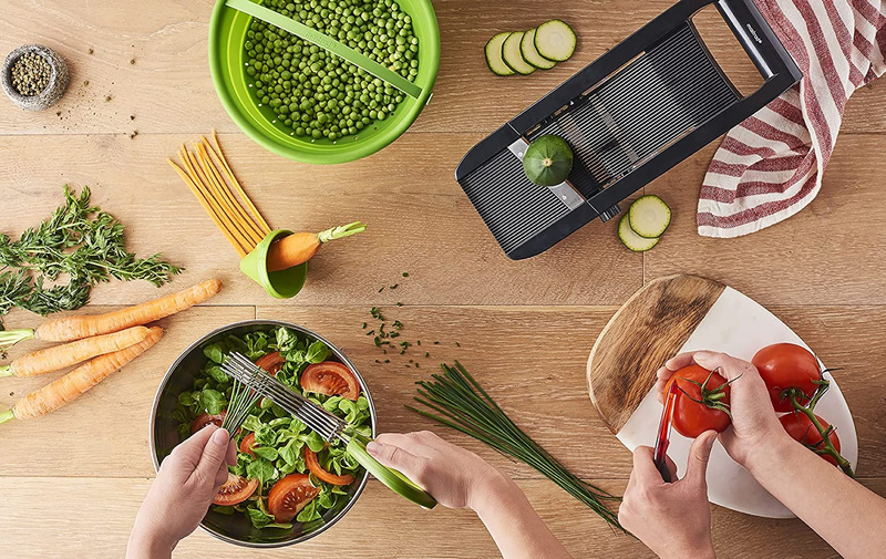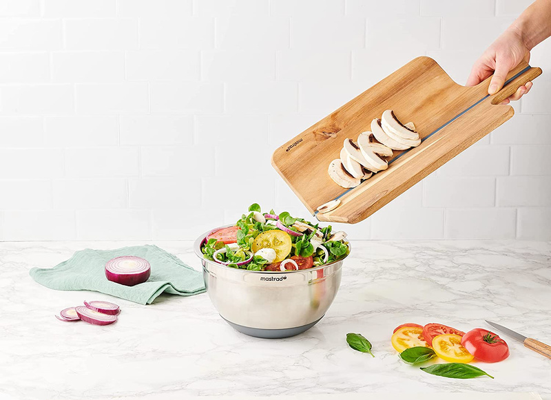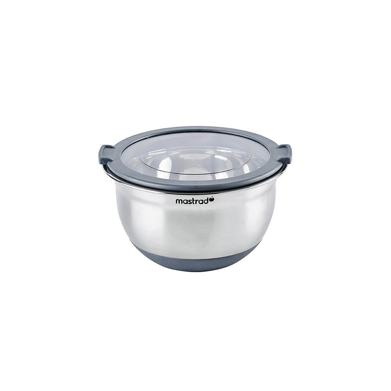 Miska ze stali nierdzewnej z antypoślizgowym dnem zapewnia stabilność w trakcie mieszania, może też zastąpić salaterkę.